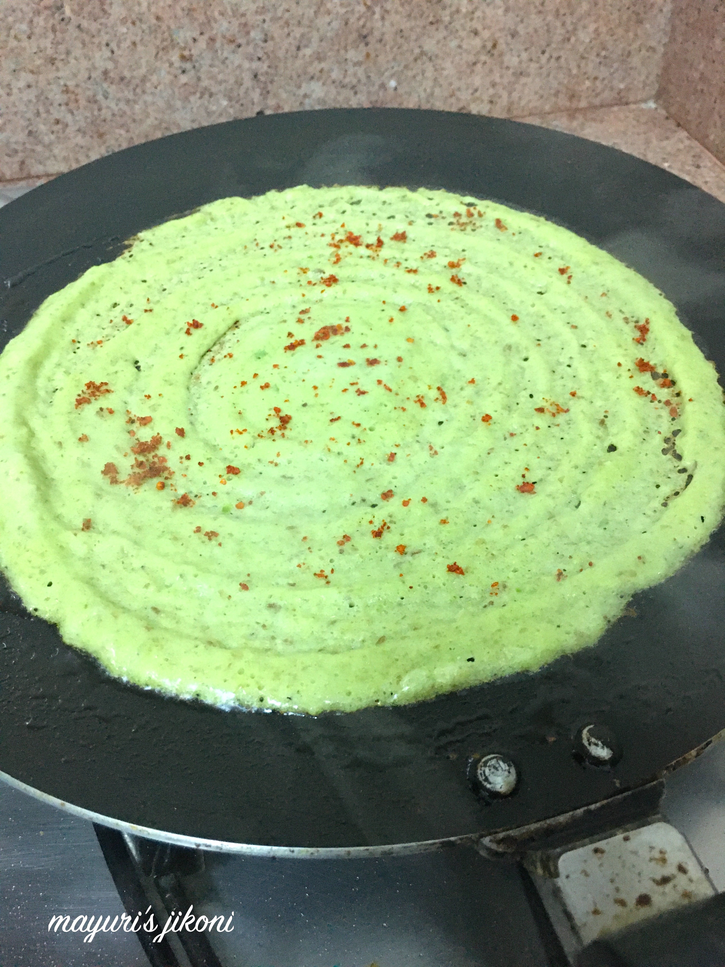 spinach is much loved here, adn I know this tastes a bit the moong sprouts chilla / pesarattu I make… so colourful … the matki addition is wonderful, mayuri !