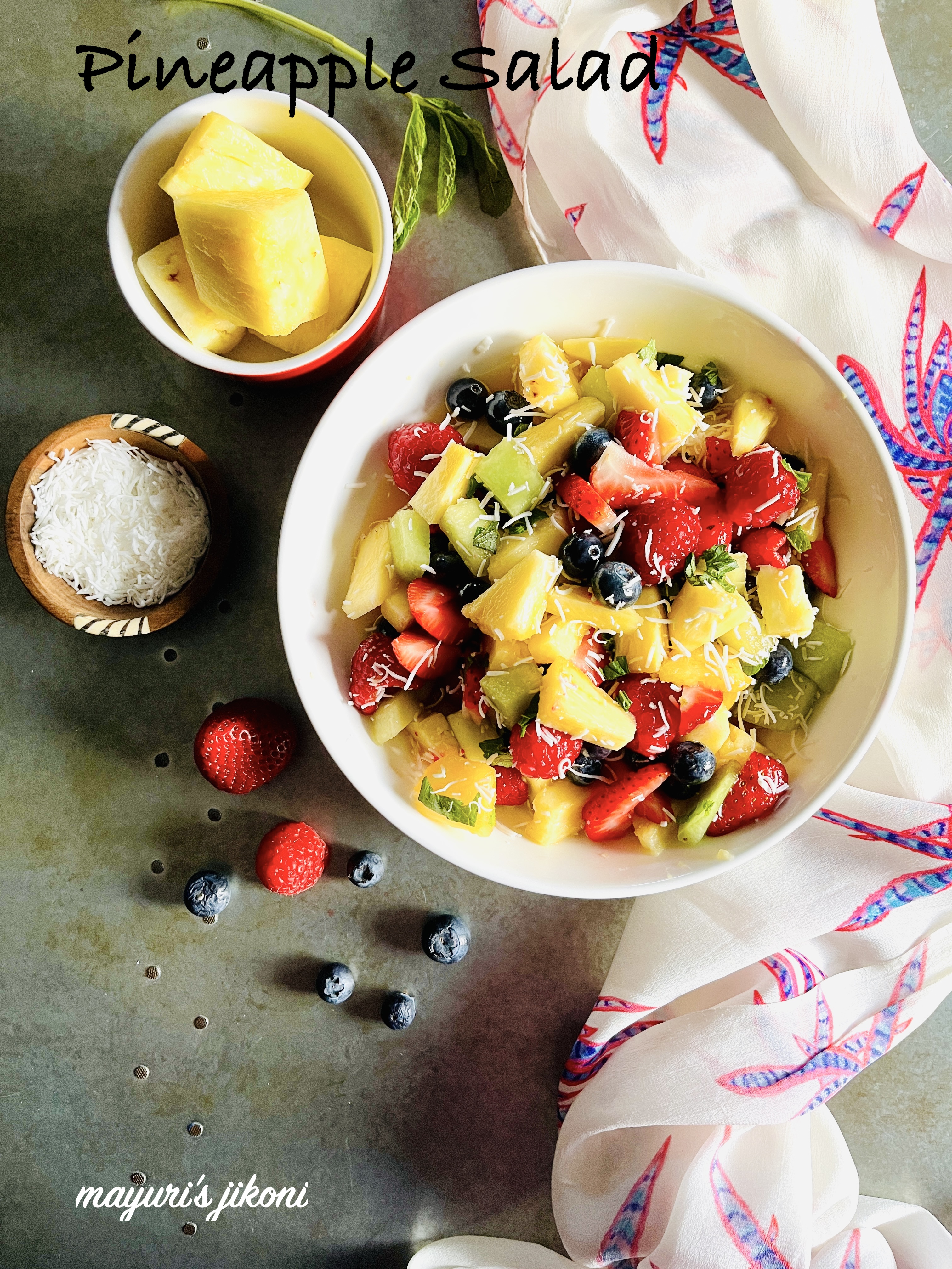 Recipe: Pineapple Salad Pineapple Salad with berries, coconut, fresh mint, with a drizzle of honey and some fresh orange juice makes a refreshing summery dessert salad. Enjoy it on its own or with some vanilla ice cream. That is what we did, enjoyed the salad with some Coaticook Vanilla Ice Cream. It is the best…